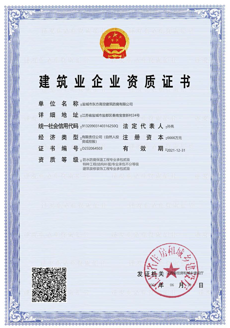 鹽城市東方高空建筑防腐有限公司地處于“東方濕地之都”,“鶴鹿之 鄉”,“高空作業之鄉”的江蘇省鹽城市。公司成立于90年代初期。是國家 批準成立的專業高空作業企業:承攬過(國內、國外)高空安裝、高空防 腐、煙囪防腐、鋼結構防腐、高空維修、煙囪維修、煙囪新建、高空清洗、 鈦鋼煙囪制作安裝、玻璃鋼煙囪制作安裝、冷卻塔防腐維修、高聳建筑物美 化亮化、防水堵漏等高空作業工程。公司外出施工人員都經過江蘇省勞動部 門的嚴格培訓...